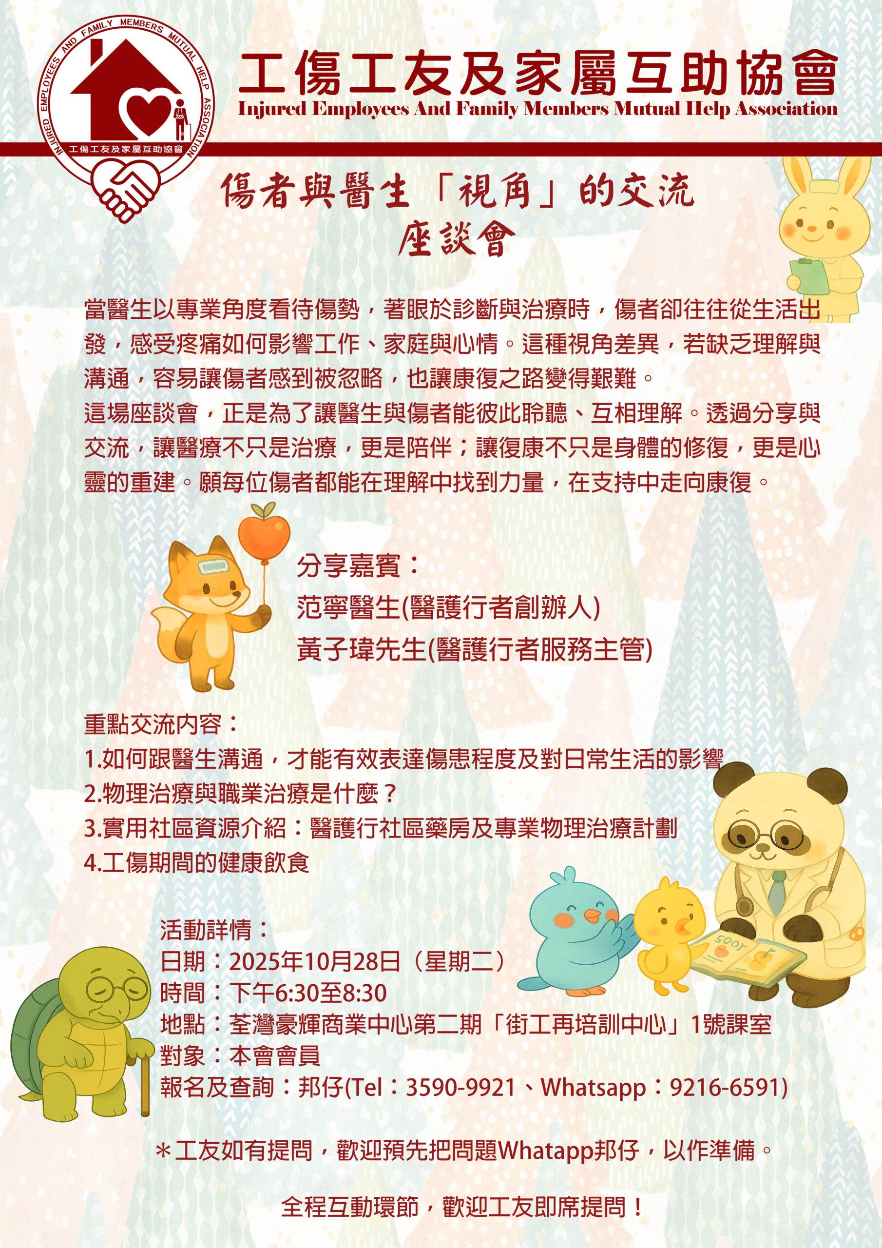 現場設有互動環節,歡迎工友即席提問,並可於報名時提交個人問題,獲得專屬解答。讓我們一起搭建理解的橋樑,助您走得更穩、更遠。